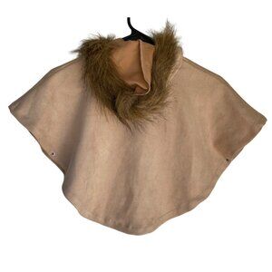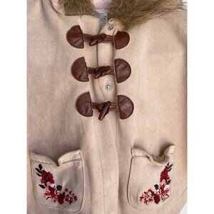 Little Lass Faux Fur Hooded Shawl Poncho Cape With Embroidered Pockets SZ 4T