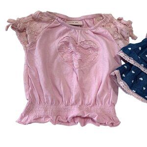 Little Lass Girls Infant Baby Sz 12 Months 2 piece outfit Set Short Sleeve Tshir