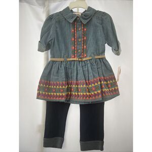 Little Lass Girls Infant Toddler 24 Month Western Denim 2 Piece Outfit NEW