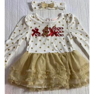 Little Lass Girls Size 6, 3-Piece Gold and Red Frilly Holiday Outfit