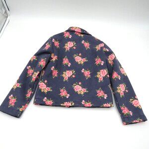 Little Lass Jacket Girls Size 4T Navy Blue Floral Moto Exposed Zipper - Preowned