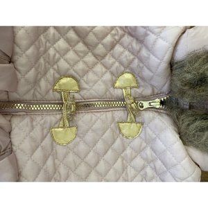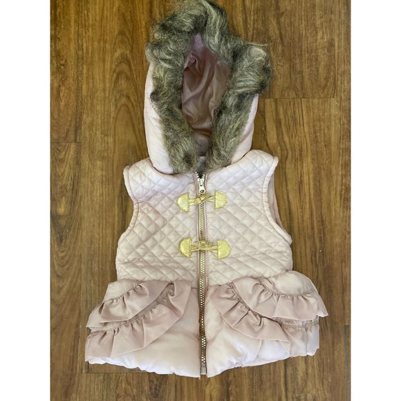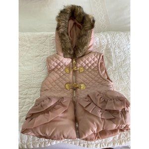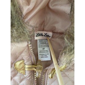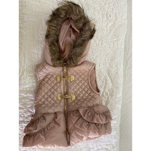 Little Lass Light Pink Puffer Vest Girls Size 2T Brown Faux Fur Trimmed Hoodie Full Zip. Golden Accents. Condition is perfect!