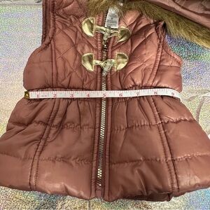 Little Lass Mauve Hooded Puffer Vest 3T Toddler Faux Fur Zipper Quilted