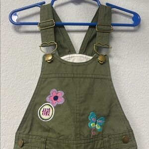 Stylish olive green kids overalls featuring playful patches, adjustable straps with heart closures and belt loops. SO many pockets for your Toddler’s precious treasures. Perfect for everyday adventures. Bundling yields best bang for your buck and offers are welcome!