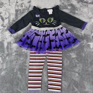 Adorable matching set with floral print. Includes long-sleeve top and pants. Features ruffle details and bow accent.