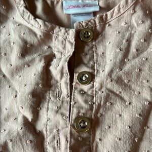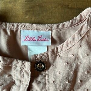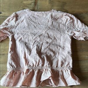 This elegant pink blouse by Little Lass showcases a romantic peplum design with a gathered, ruffled hem and short sleeves. Crafted from a textured fabric, it exudes a vintage-inspired charm ideal for warm weather.
