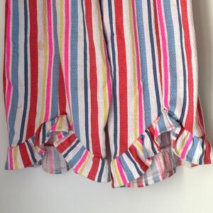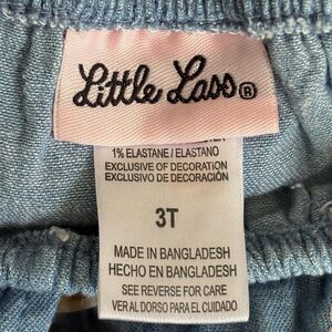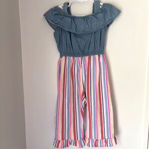 Little Lass Size 3T Denim & Cotton Pinstriped Ruffle Leg Wide Collar Jumpsuit #M