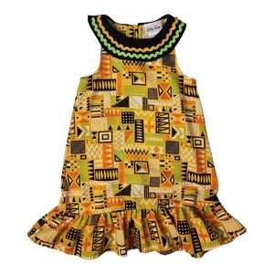 Little Lass Sleeveless Yellow Tribal Print Toddler Dress Size 4T