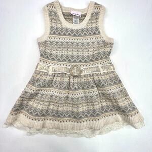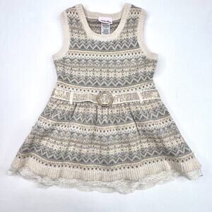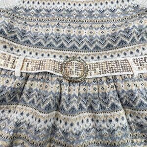 Adorable Little Lass hold, grey, and cream metallic and sparkly sweater dress with belt detail. Size 5. perfect for the holidays or new Years! In great conditon.