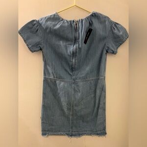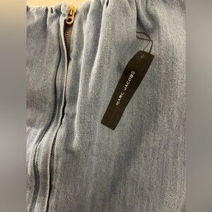 Beautiful Little Marc Jacobs dress in blue denim with seams and worn markings, so it looks like the dress is made of a pair of old jeans. Behind the right shoulder there is a black print that looks like a hangtag with the name "Marc Jacobs" in white. The dress is made in a woven quality fabric.