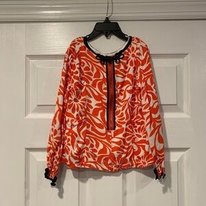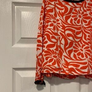 Orange floral pattern, lined , Ruffle detail on sleeve and back zipper