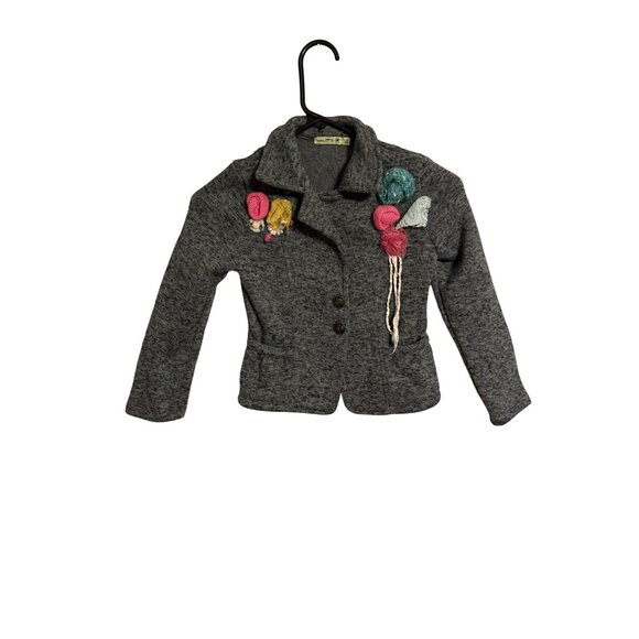 Little Mass Girls Heather Gray Button-Up Jacket W/ Floral Embellishments Size 6X