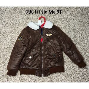 Little Me Aviator Pilot Bomber jacket Sherpa collar brown 3T