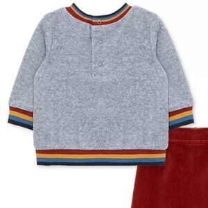 All aboard for an absolutely adorable look. This piece from Little Me features a soft velour top with an embroidered train appliqué.