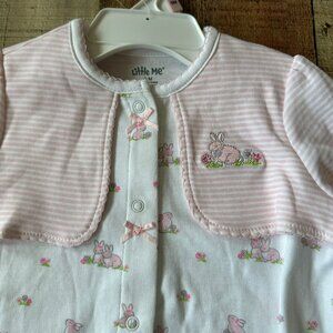 Little Me Baby Girls Size 9M Button Down Bunny Footie Outfit with Hat Set