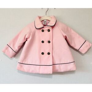 Girls Little Me Pea Coat Pink With Navy Trim Navy And Gold Buttons Size 12 Months