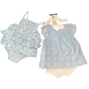 Little Me Girl’s Blue and White Eyelet Dress Outfit Set Size 24 Month’s NWT