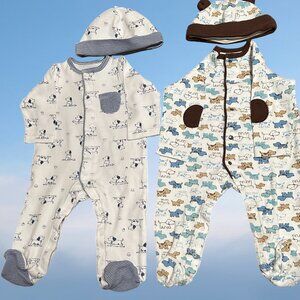 Little Me Infant Boys Footed Sleepers 0-9 Months GUC
