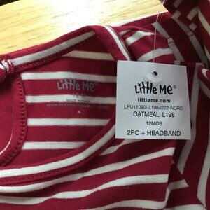 Little Me Infant Striped Dress Red/ Oatmeal 12M