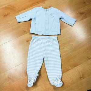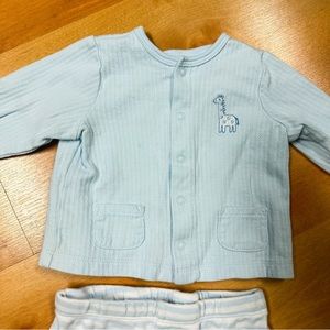 Little Me Light Blue & White 2-Piece Giraffe Cardigan & Pant Set Baby Size 6M