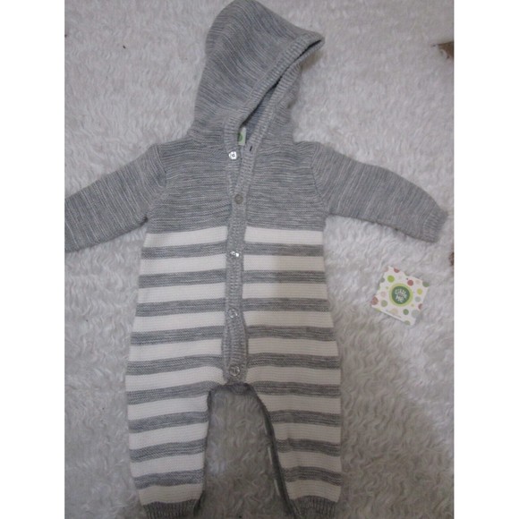 Little Me Marled Hooded Coverall grey and white stripes beautiful knit 6M