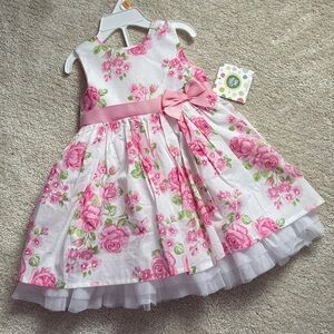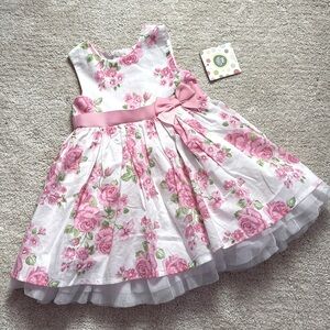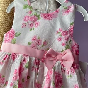 Little Me Baby Girl Floral Pink Dress 2pc set with soft white tulle attached for a puffy appearance at hemline and 3 buttons on the back. Size 12 months Brand new. #1151