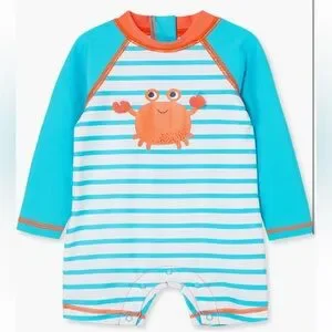 Little Me Rashguard white and blue strip with crab graphic. Size 12 months. Gently used.