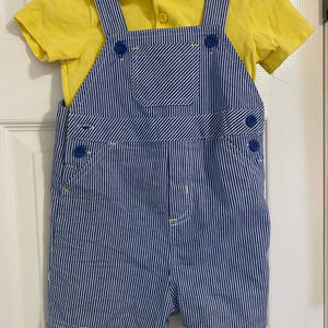 Yellow short sleeve polo shirt with embroidered blue anchor on sleeve