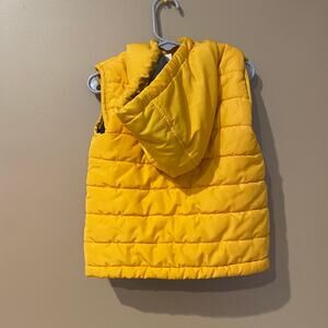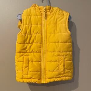 Little Me toddler vest, toddler boys hooded vest, size 3T vest, yellow puffer vest, toddler zip up vest, Little Me outerwear, toddler boy fall vest, gold yellow vest, sleeveless jacket toddler, toddler layering vest