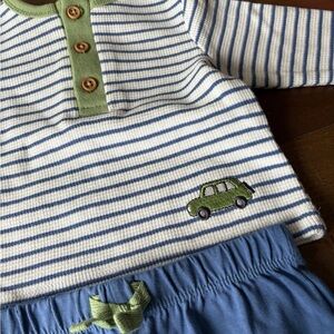 Little Me Waffle Stripe Car Outfit Blue Green Shirt And Pants Set 3 Months