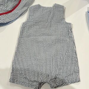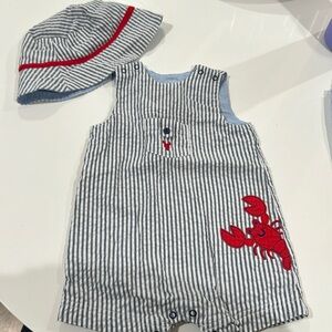 Little Me striped lobster romper with matching bucket hat