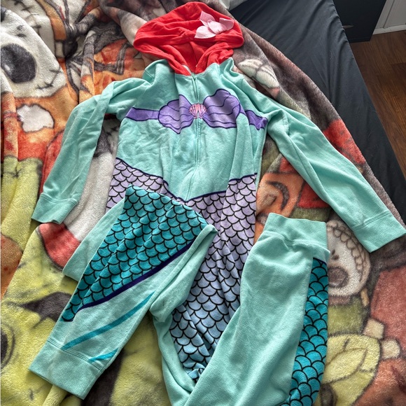Ariel Disney little mermaid onesie for adult woman. Size x large. Design on the front, solid color on the back