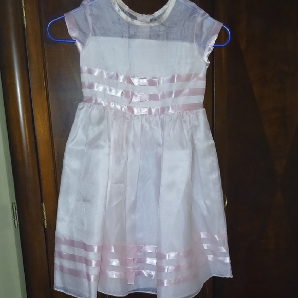 Elegant dress with pink and white design. Perfect for formal occasions.