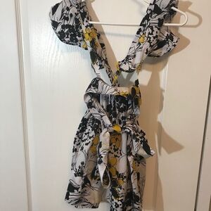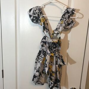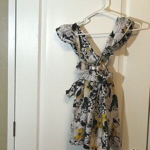 New with tags Little Miss Hot Stuff floral overall dress in size 4. Features a flared silhouette, tiered back ruffle, and straps.