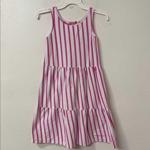 Adorable dress with vibrant pink and white stripes. Perfect for casual outings. Comfortable and stylish for your child.