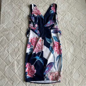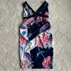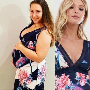 Little Mistress | Blue and Cream Floral Maternity Dress | Size 8