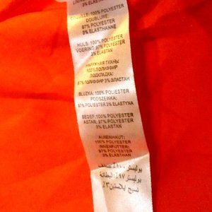 The fabric is Polyester shell over a Polyester/Elastane lining, recommended hand wash only.
