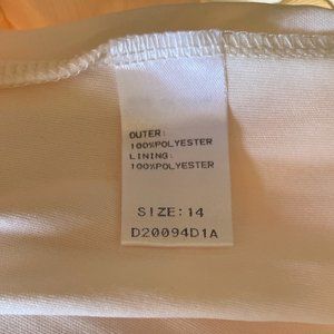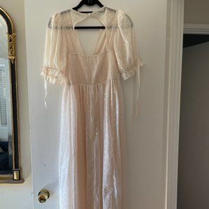 Little Mistress floor length dress, size 14, ivory w dots, puff sleeves