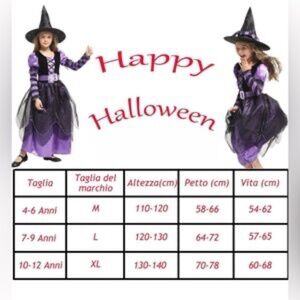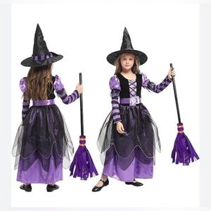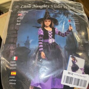 Children’s Halloween Purple Witch Costume size large (120-130cm) “Little Naughty Violet Witch “ new in package no tags with dress,hat and belt