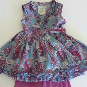 Cute little wrap around dress blouse with matching leggings, baby girls size 6-12mo. Made by Little Peanut, 100% cotton, machine wash cold, tumble dry low, warm iron as needed. Sweet little everyday wear!! :)