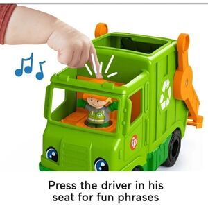 Little People toys, Fisher Price trucks, fire truck toy, recycling truck, garbage truck, musical, recycling truck toy, toy figures, imaginative play, durable plastic, bright colors, truck set, children's toys, interactive play, educational toys, toy vehicles