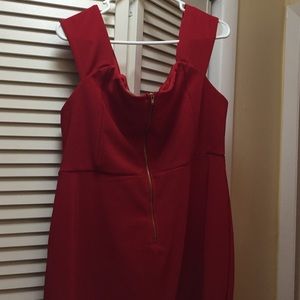 Classy Red Dress with thick straps that hang off the shoulders. Gold zipper in the back that goes halfway down. A definite show stopper!๐