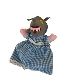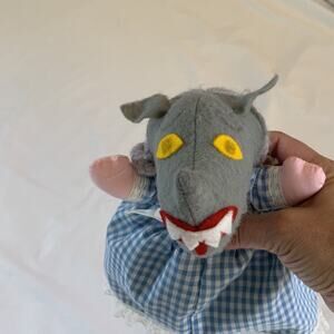 This Little Red Riding Hood 3-in-1 Flip Doll is a vintage plush that features three characters - Little Red Riding Hood, Big Bad Wolf, and Grandma. This reversible doll has a blonde and gray yarn hair and is made of cloth and fabric materials. Standing at about 9.5 inches tall, this 3-in-1 doll is perfect for play and can appeal to various age groups from teens to adults and even unisex babies and toddlers. With a timeless Red Riding Hood theme and vintage design from the 1980s, this doll is a unique and nostalgic addition to any collection.