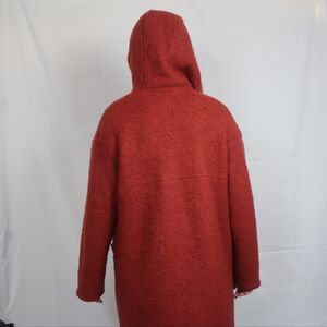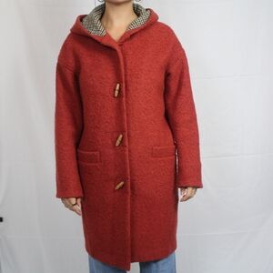great condition red wool coat with wooden closures at front