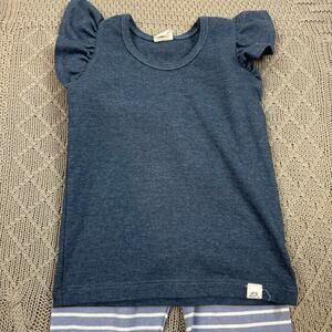 Little Road Co. Lulu and Roo Blue Ruffle Sleeve Top and Striped Pants Set ~ 2T