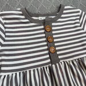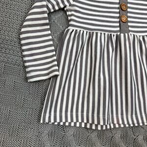 Adorable striped long sleeve baby dress in gorgeous neutral color combo with button details.