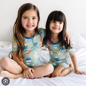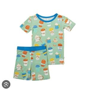 Little Sleepies Love you A Latte Aqua Bamboo Pajama Shorts Set 4T