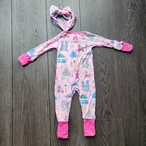 Little Sleepies Pink Weekend in Paris Zippy with matching headband, 0-3 months