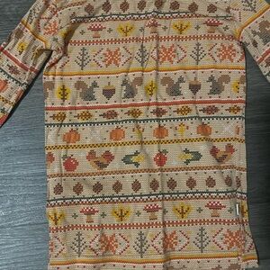 Little Sleepies pajamas set- squirrel/mushroom/rooster orange print.