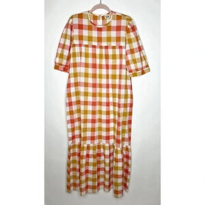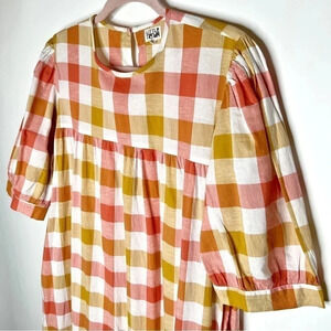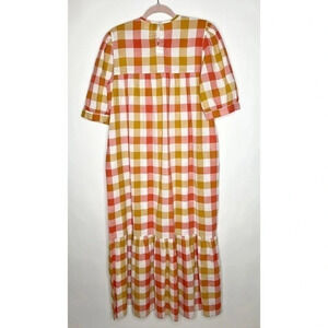 Little Tienda Maxi Dress Orange Yellow Check Gingham Print Belted Size Small